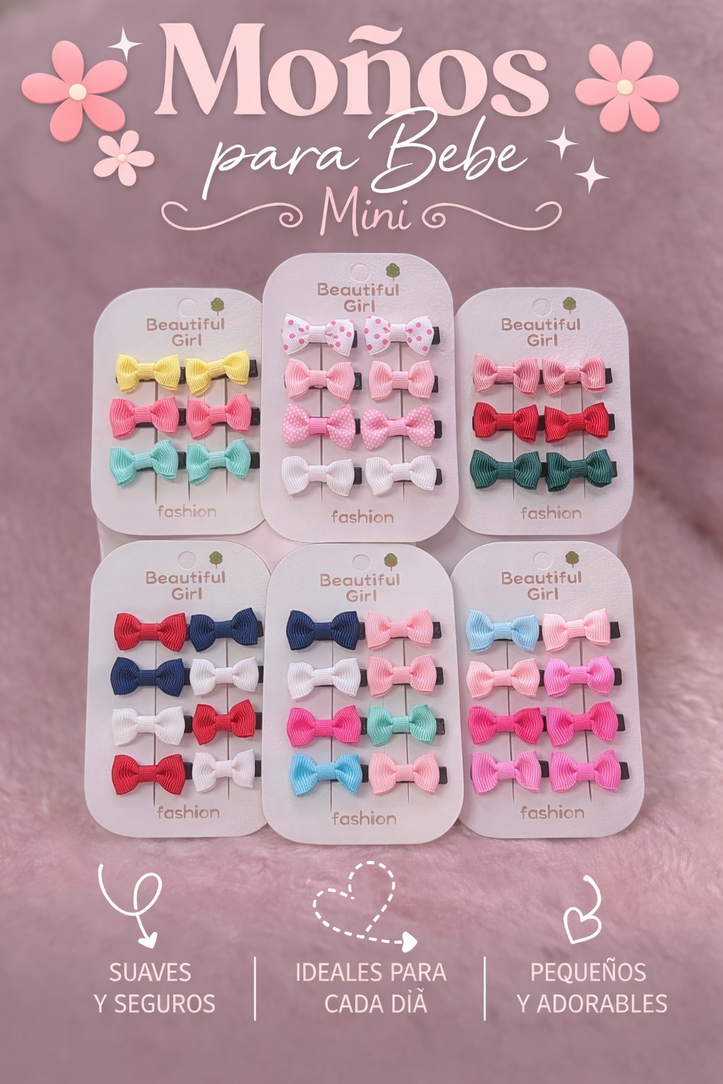 Set de moños mini para bebé diseñados para complementar peinados de forma delicada y adorable.