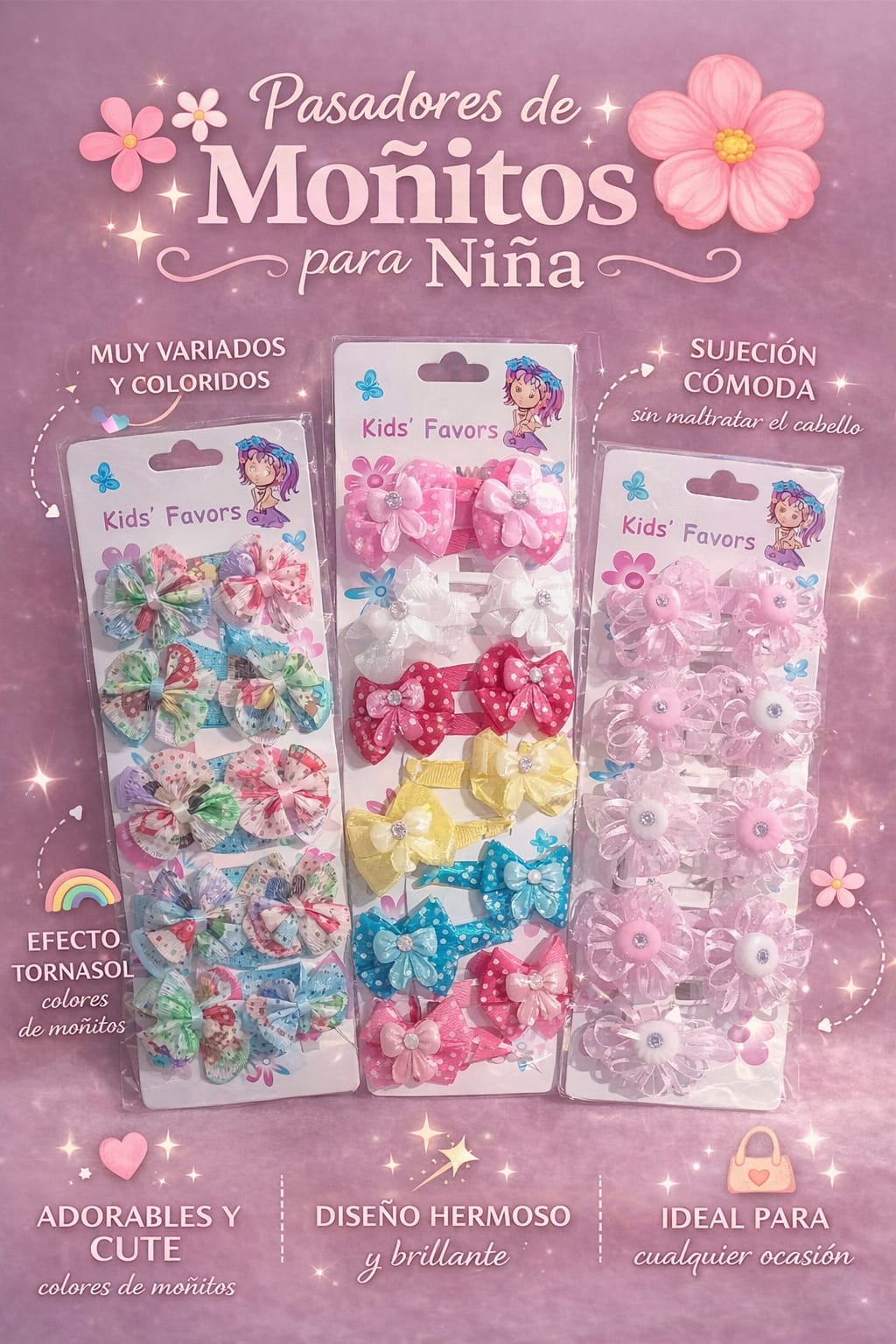 • 🎀 Dale un toque tierno y encantador al peinado con estos hermosos pasadores de moñitos para niña 💖