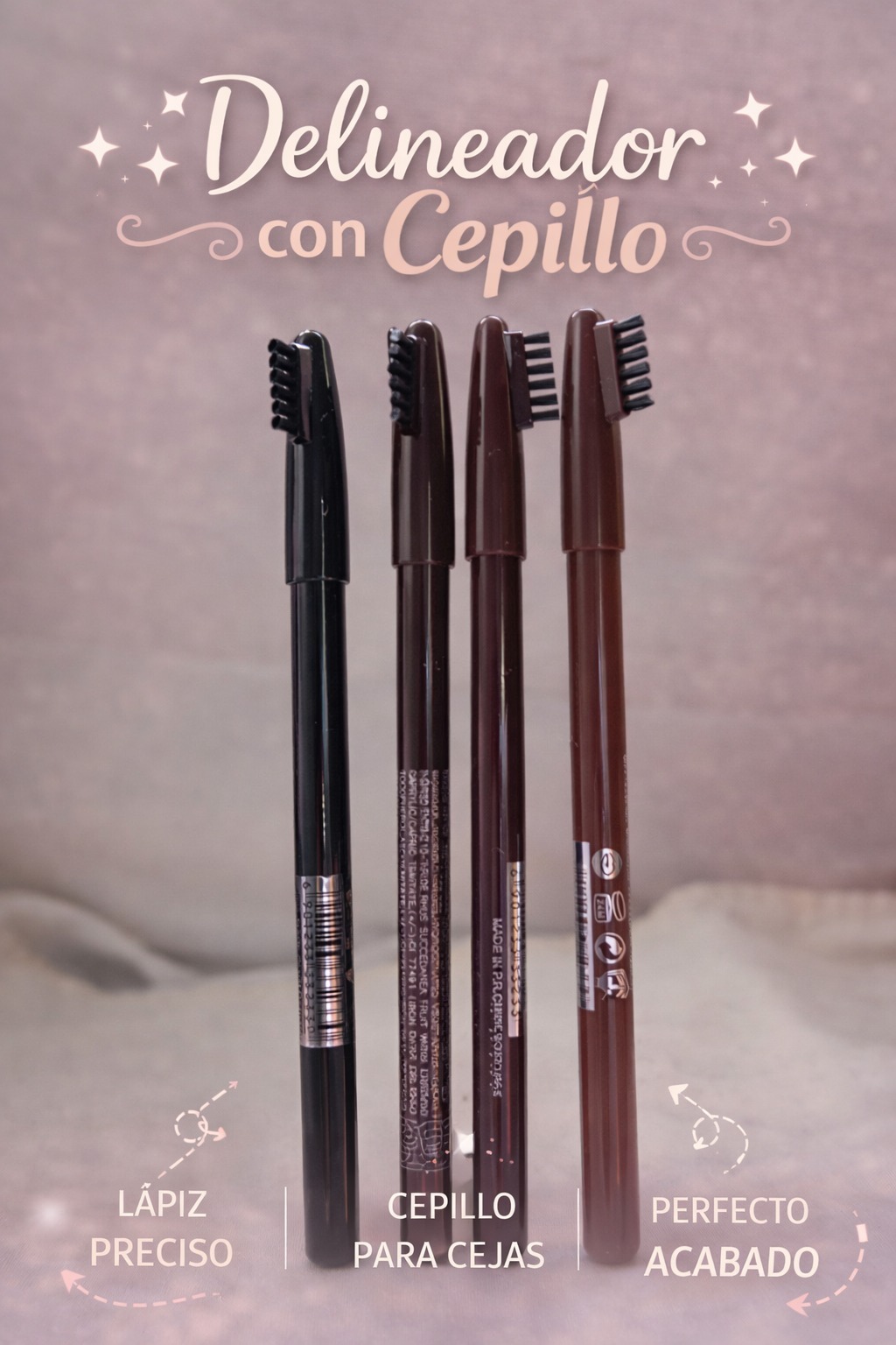 Delineador de cejas con cepillo integrado ideal para definir y dar forma natural a las cejas.